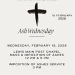 6:00 pm Main Post Chapel (Mass and Imposition of Ashes)