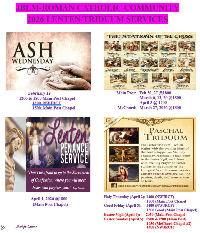 12:00 nn Main Post Chapel (Mass and Imposition of Ashes)