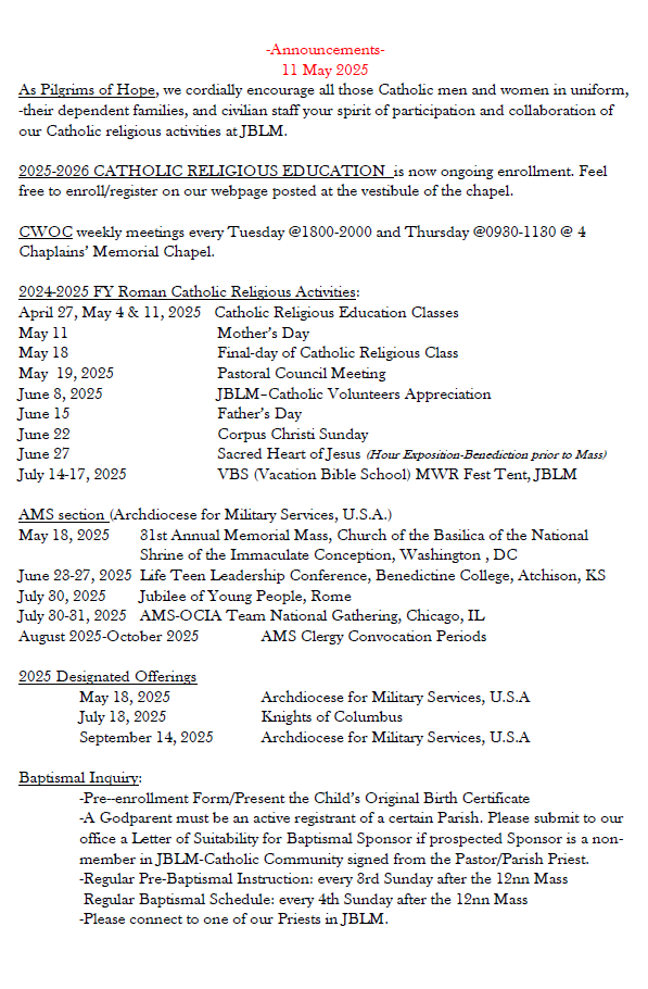 Weekly Bulletin – Sunday, May 11, 2025