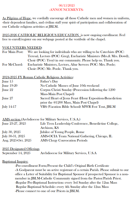 Weekly Bulletin – Sunday, June 15, 2025
